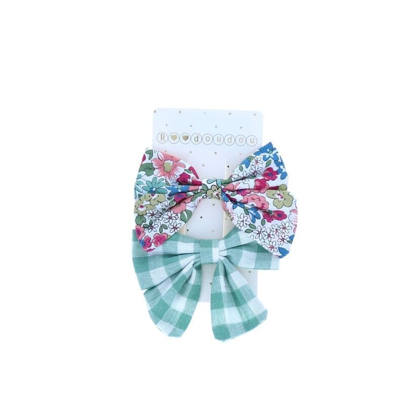 Lot de 2 barrettes à nœud fleurs et carreaux