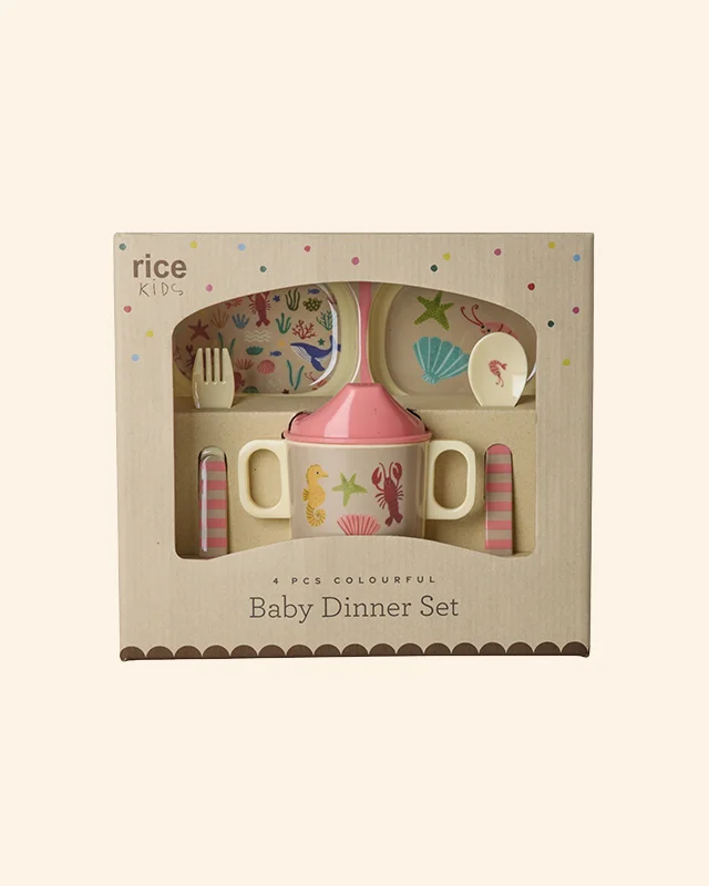 Set bébé en mélamine, pour les plus petits de la famille – dans un joli coffret cadeau.